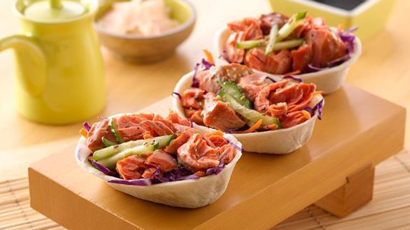 Deze taco combineert verschillende smaken van buitenlandse gerechten met verse vis. De smaak van uw favoriete sushi, maar zonder rijst.